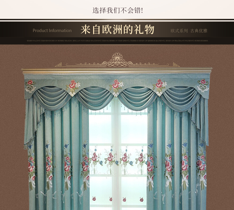 席韻の家紡のカーテン欧風の刺繍の遮光リビングルームのカーテンは1500省心の全屋を注文して注文して注文します。注文したら1600年の個人設計で取り付けて注文してください。幅1メートル*高さ2.7メートルの単価(韓国のひだフック)は高くなります。