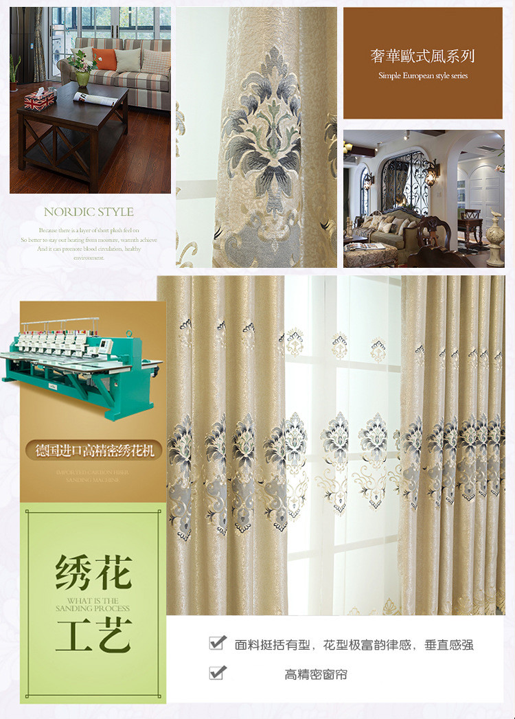 席韻の家紡のヨーロッパ式の客間の寝室の遮光の刺繍のカーテンの寝室の客間の室内は注文して作らせます。同じ窓のカーテンを注文して作らせます。高さ1メートル*高さ2.7メートルの単価(韓国のしわのフック)は高くなります。