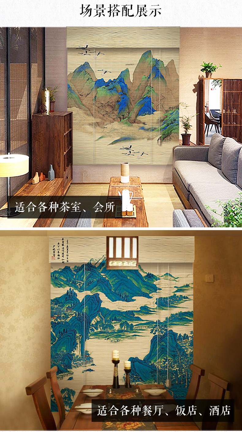 CR 9重彩山水プリントのカーテンカーテンカーテンカーテンの遮光装飾仕切り書斎中国式茶屋の碧黛【写真価格ブランドのオファー】-京東