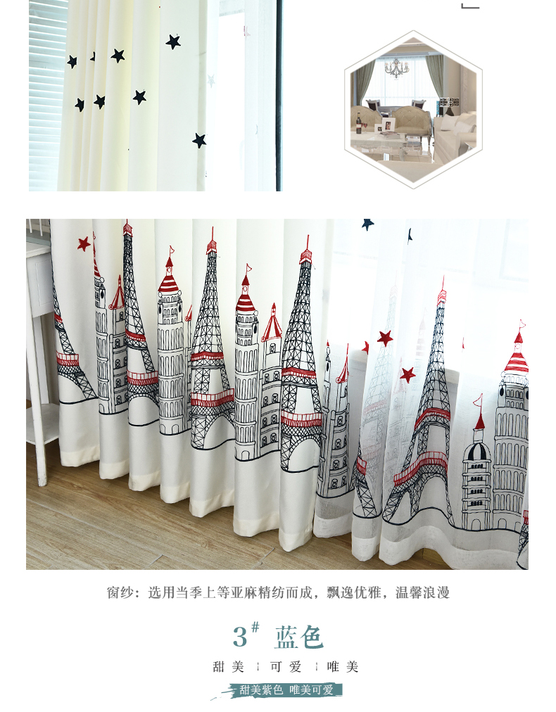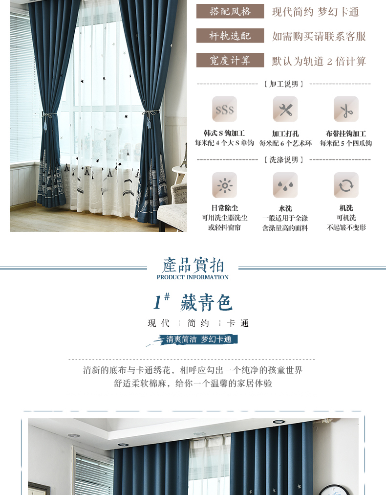 商品の名称カーテンの小さい2綿の麻の刺繍のカーテンは地中海の風格の新型のファッション的な寝室の客間の白いカーテンの製品の特価の倉庫の01刺繍の城壁の紺色のカーテンの既製品の幅の2.5 m*高い2.7 m穴を開けて1切れ加工します。