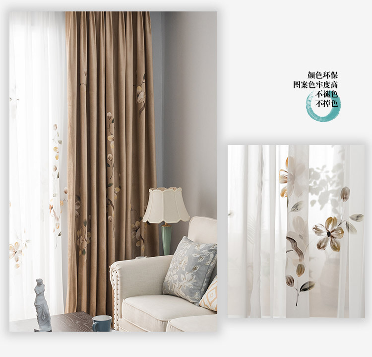 黛恩糸中国式の新古典水墨の手描きカーテンの窓の布地は完成品を注文して客間の窓の紗のカーテンのベランダの紗の田園の清新な古典のカレーの布の一メートルごとに(加工が無料です)何メートルを要して何件を撮影しますか?