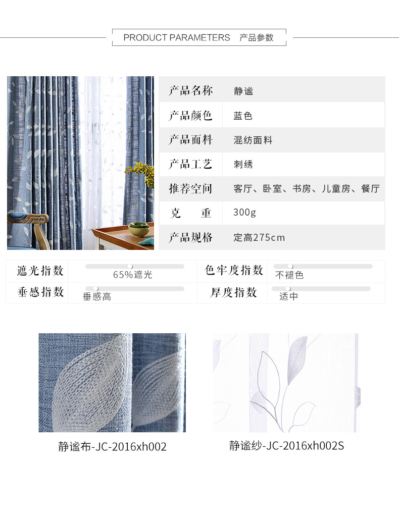 金蝉田園の小さい清新な刺繍のカーテンのリビングルームの完成品のカーテンは静謐な布のカーテン-青い1メートルの材料の価格(穴を開けます/フックは無料で加工します)を配置して何メートルの撮影を必要としますか?