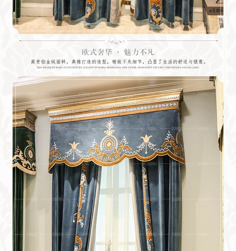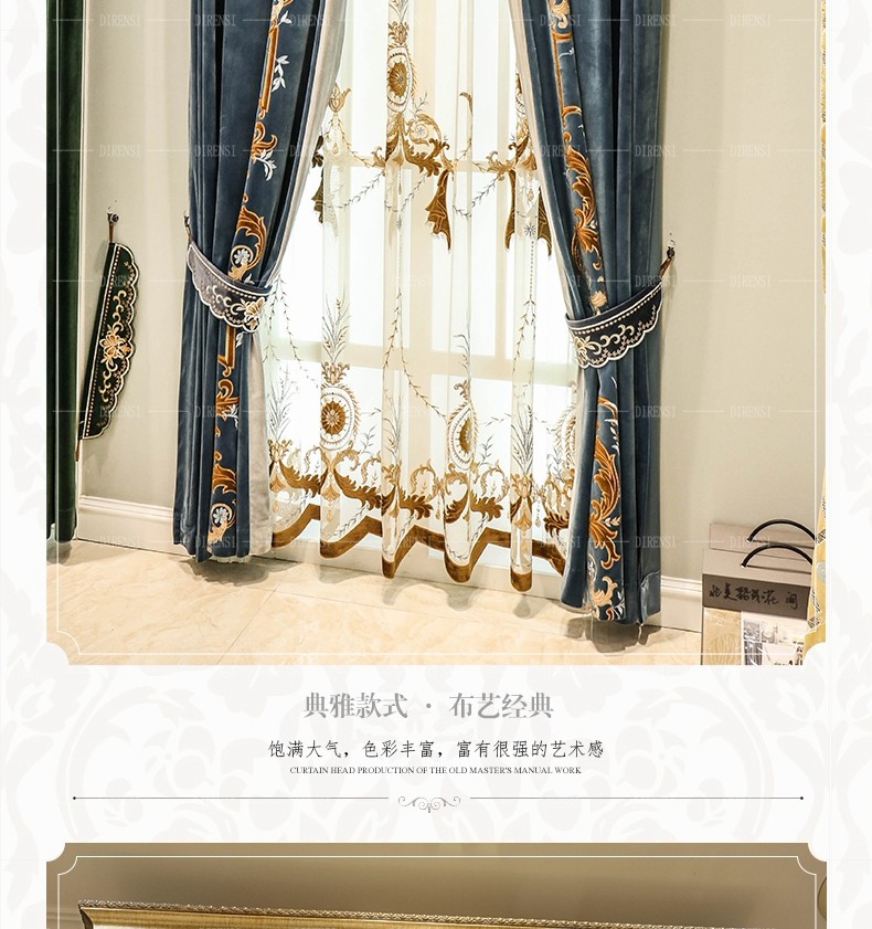 | 商品の名称 | 黛恩の糸のヨーロッパ式のカーテンの客間の寝室は簡単に近代的なアメリカ式の別荘の豪華な絨毯の刺繍のカーテンの完成品を注文して墨の緑色の純粋な色の布の一メートルごとに |