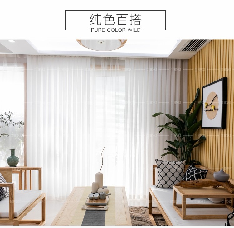 黛恩糸純白の紗のカーテンは光が透過しないので、現代北欧バルコニーの寝室の紗は雪の紡績糸を遮断します。