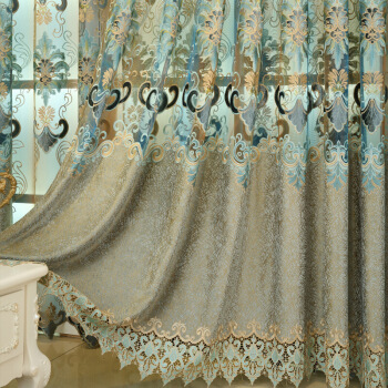 席韻の家紡の欧風の古典刺繍のカーテンのシフニールのレースの刺繍のカーテンをカスタマイズして完成品の席韻の家を注文して作らせます。刺繍のカーテンの欧風のカーテンの灰緑の布18-31オーダーメイドします。幅1メートル*高さ2.7メートルの単価(ナノリング)は高くなります。