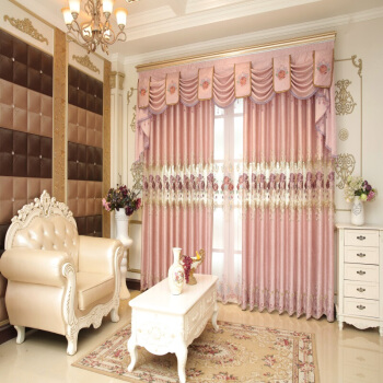 席韻の家紡のピンクの刺繍のカーテンの布の高精密な花の遮光の布のカーテンの窓の紗は同じ種類の窓のカーテンをカスタマイズして広く1メートル*高さの2.7メートルの単価(韓のしわの針)を注文して高くなることができます。