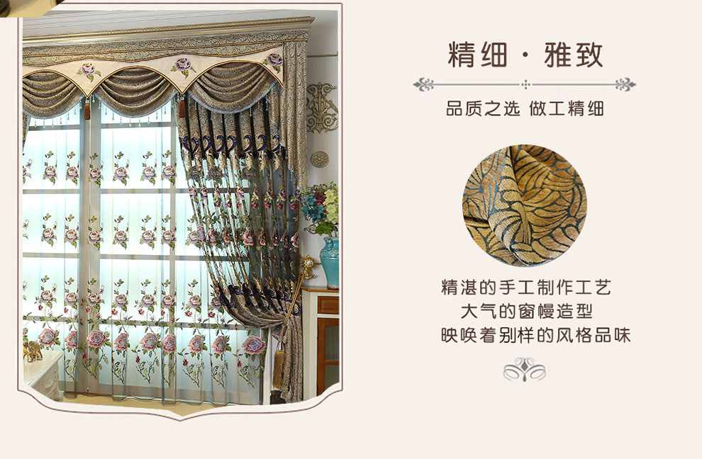 席韻の家紡の欧風豪華な別荘の客間の布芸のカーテンの窓の紗は同じ種類の窓のカーテン(青い)を注文して広くして1メートル*高い2.7メートルの単価(ナノリング)を注文して高くすることができます。