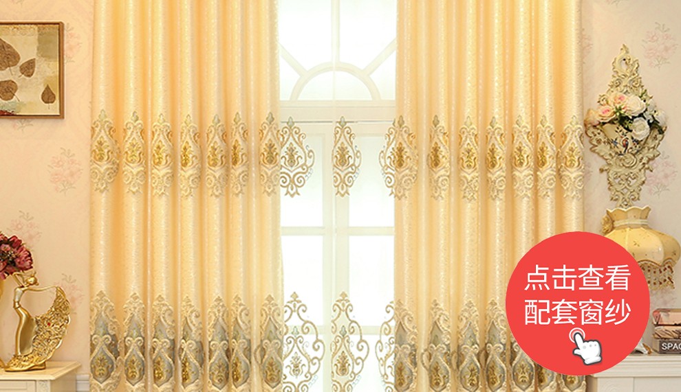 席韻の家紡のカーテンは既製品を注文してヨーロッパの現代の客間の寝室の刺繍のカーテンを注文して黄色の布のオーダーメイドの幅の1メートル*高さの2.7メートルの単価(韓しわの針)を決めて高くなることができます。