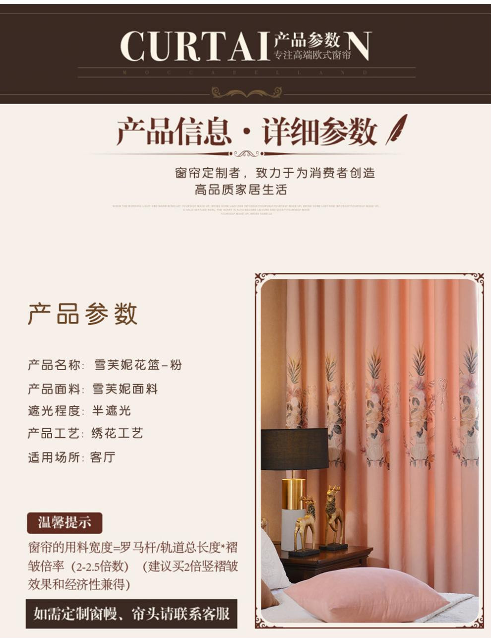 席韻家紡雪芙尼カーテン北欧カーテン居間の寝室の刺繍の遮光カーテンは同じカーテンをカスタマイズして、幅1メートル*高さ2.7メートルの単価(韓国のしわフック)を高くすることができます。
