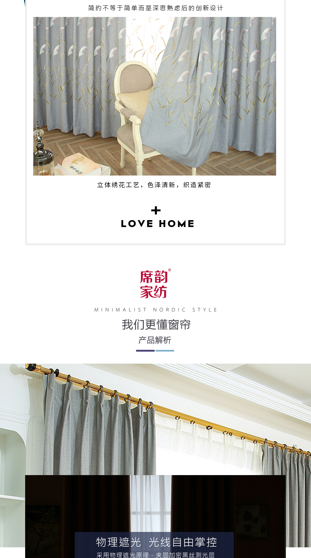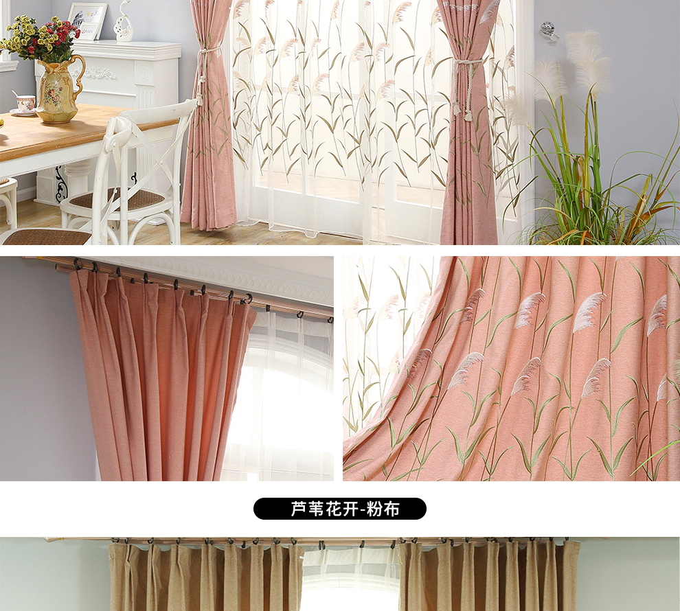 席韻家紡北欧カーテンカーテン遮光寝室のバルコニーのカーテンカーテンは、葦の花が咲くようにカスタマイズできます。銀布オーダーメイド幅1 m*高さ2.7 mの単価(四本爪フック)を高くします。