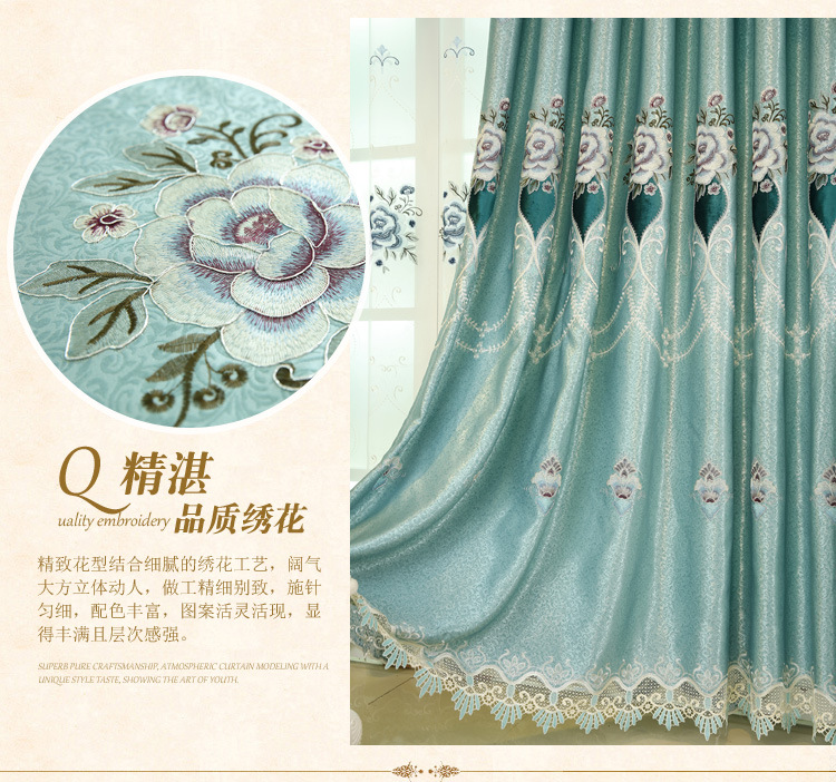 席韻の家紡の欧風は绒を貼って刺繍のカーテンを貼って客間の床につきますベランダの完成品のカーテンは浅いオレンジの黄色の布(17-15)を注文して作らせます。幅1メートル*高さ2.7メートルの単価(4本の爪のフック)は高さを変えることができます。
